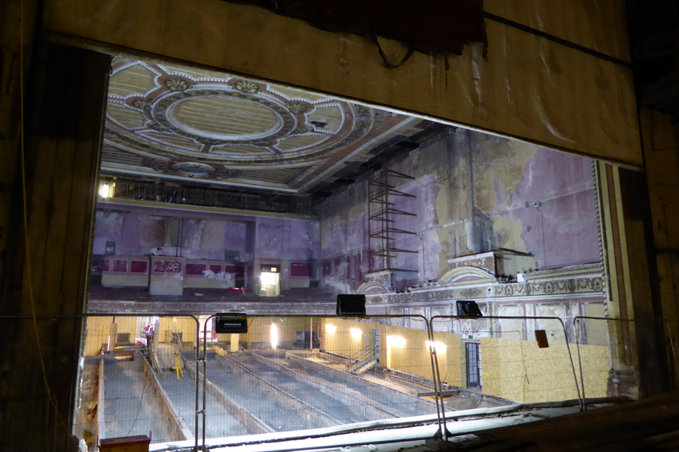 The theatre opened in 1875 as part of the rebuilt Alexandra Palace, the Victorian theatre was equipped with the latest in stage machinery and technology. The rebuilt theatre was designed to bring "wonder and spectacle" to its audience. After a second fire and long periods of closure, the theatre had been untouched since its last professional use in the 1930s. Restoration kept a light touch, preserving the evocative Victorian interior. HOLT gave a grant towards restoring the statues of Thalia and Melpomene either side of the proscenium, and the restoration of the proscenium itself.