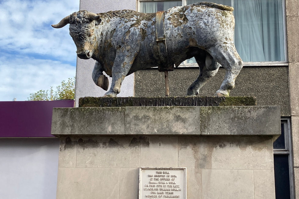 First rescued by Sir Charles Hamilton and moved to Cambridgeshire, the statue was acquired in 1918 by Hamilton’s friend Sir William Bull, MP for Hammersmith. A lawyer and energetic politician who lobbied for numerous causes including a tunnel under the Channel and for Women’s Suffrage, he was a supporter of sculpture and known for personal toughness – he would even fight hecklers on the political trail. In 1918 he was keen to shore up support in his new seat and the bull was a perfect mascot. The statue was transported by train to London in 1918 and hung outside his Hammersmith office. In 1962 the office was demolished and the bull moved again to King Street, outside the Ravenscourt pub, then renamed the Black Bull pub. The statue received Grade II listing in 1970. The Black Bull pub is due to reopen in 2026.